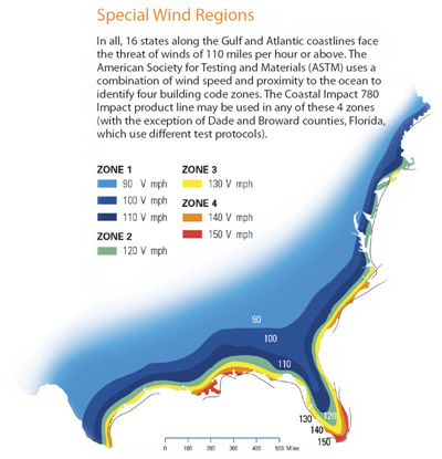 - Double-wall glazing bead design constitutes a key security feature, allowing the window to withstand 220 mph winds