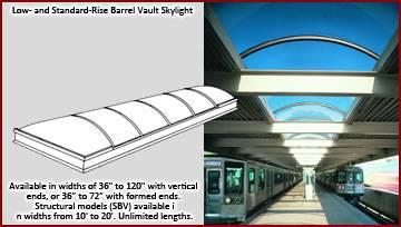 Wascos Continuous Vault systems are designed for unlimited applications utilizing site-built curbs on both flat and pitched roofs. Glazed with your choice of acrylic or polycarbonate single or double-glazed in-fill in clear, tinted and thermal translucent options.