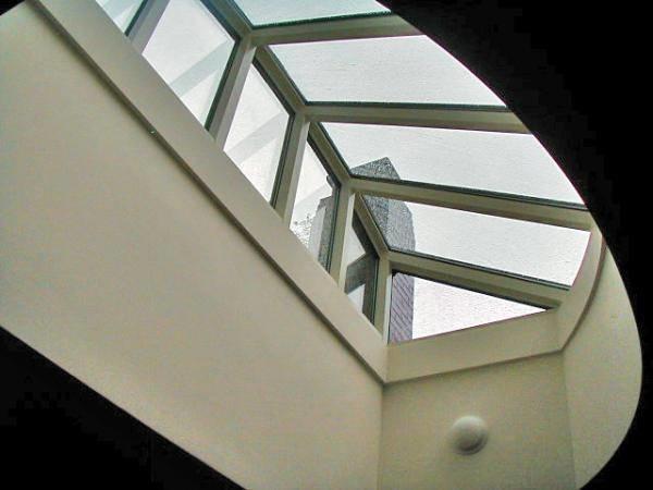 Our Cluster Systems allow for the creation of dramatic skylighting over large enclosures, utilizing site-built structural grid supports on flat roof applications. Theyre glazed in acrylic or polycarbonate in clear, tinted or translucent.A dramatic Accent Above StairsModel CL Cluster System: Designed to install on most structural supports. Pitch is 1/4":12. Maximum module size: 80 x 80.