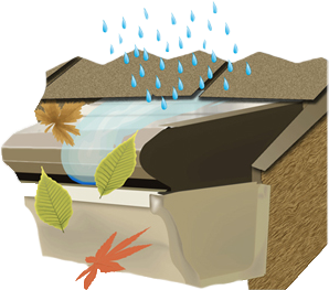 Gutter Helmet's patented gutter system only allows water to enter your gutters. Leaves, twigs, and gunk stay out! The secret of our gutter protection system is its textured surface, which makes the rain cling to it as it flows downward. The edge of Gutter Helmet is rounded and extends beyond the gutter. Rainwater curves around the edge and flows into a slit so narrow that debris cannot pass through. Gutter Helmet catches rainwater, and only rainwater! Even though the slit is only 3/8" wide, Gutter Helmet has been proven to handle 22 inches of rain an hour without overflowinga rate which is more than twice the amount of rain ever recorded in the U.S.
